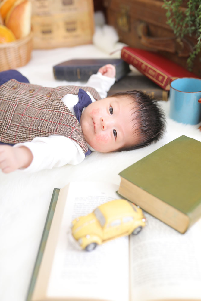 寝たままでお店に到着したれんくん^^ 撮影直前まで寝ていたのもあってかとってもご機嫌さんで カメラ目線も上手にしてくれました! ご家族の皆さんご協力ありがとうございました!!