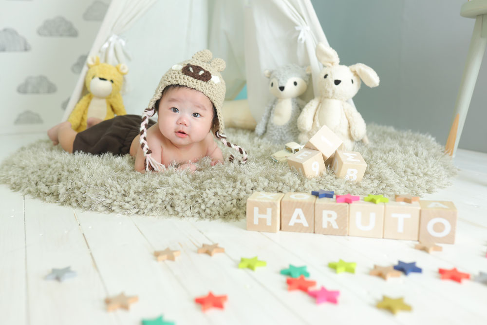 最初は緊張していたのか真剣なお顔で カメラ目線をしてくれたはるとくん^^ ママやパパの声が聞こえると安心してくれたのか ニッコリもしてくれました! ママさん、パパさんご協力ありがとうございました!!