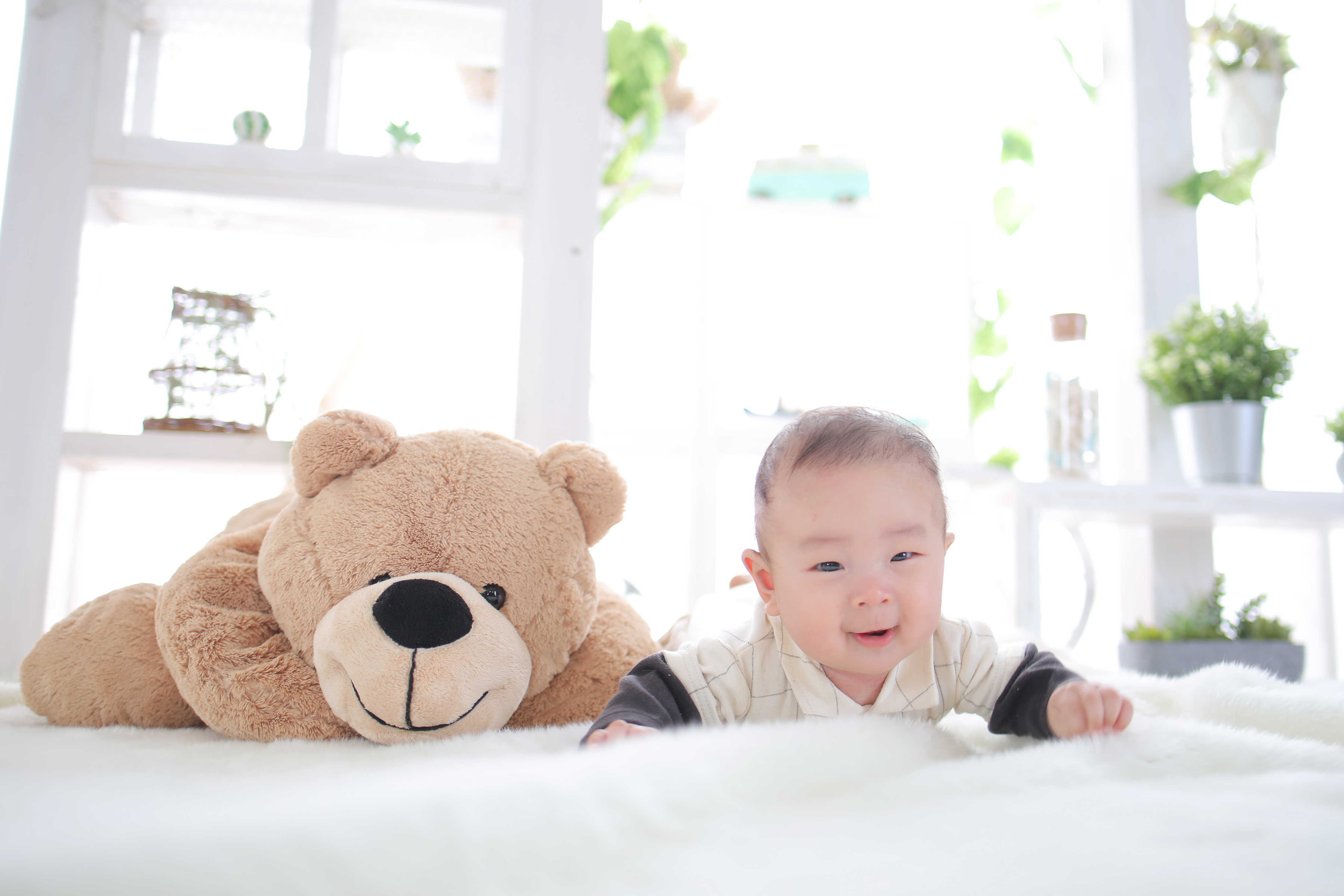 お店につくまで眠っていたたいがくん^^ たくさん笑顔を見せてくれて終始ご機嫌さんでした! お持ち込みのお洋服もとても可愛らしいものばかりで 得意のうつ伏せで最後まで頑張ってくれました🌸