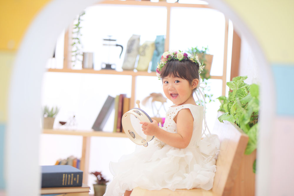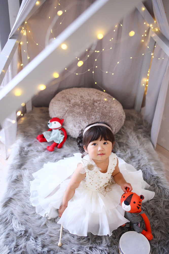 自分で選んだお着物を着ての撮影でした^^ 最初は少し緊張していたももちゃんでしたが、 すぐにスタジオにも慣れて素敵な笑顔をたくさん見せてくれました!!