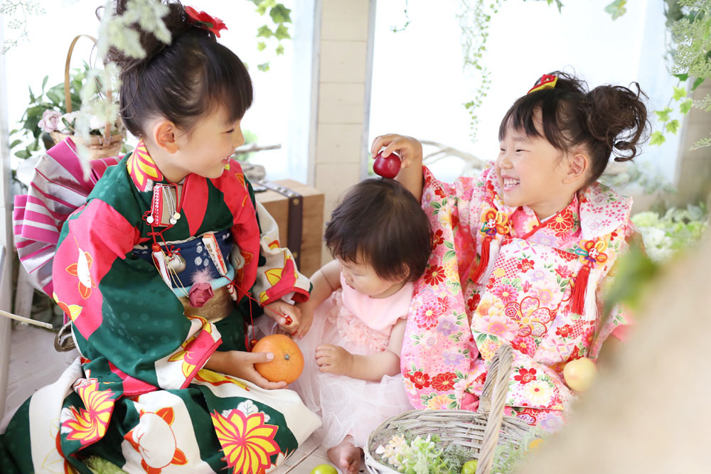 本日最後のご紹介は3歳七五三記念のゆりなちゃんと 7歳七五三記念でお越しのももかちゃんです✿ 妹のなぎさちゃんも一緒にきてくれました!