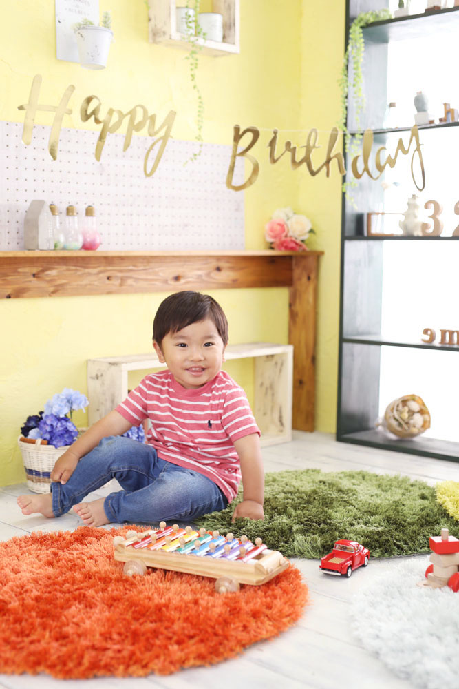 続いてのご紹介は2歳誕生記念でお越しのえいとくんです☆ お兄ちゃんとお揃いTシャツを着ての撮影でした!