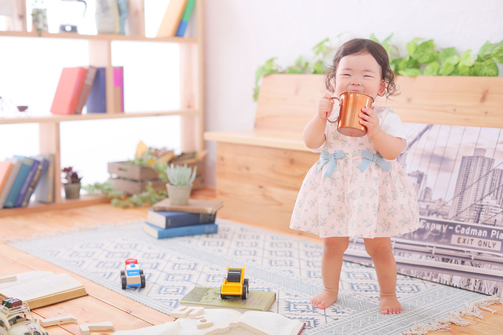 最初は少し緊張気味のモデルさん^^ 撮影が始まって少し経つと好きなおもちゃを見つけて 楽しそうに遊んでくれました♪ 特にコップがお気に入りだったみたいです☆ とっても笑顔が素敵なモデルさんでした^^