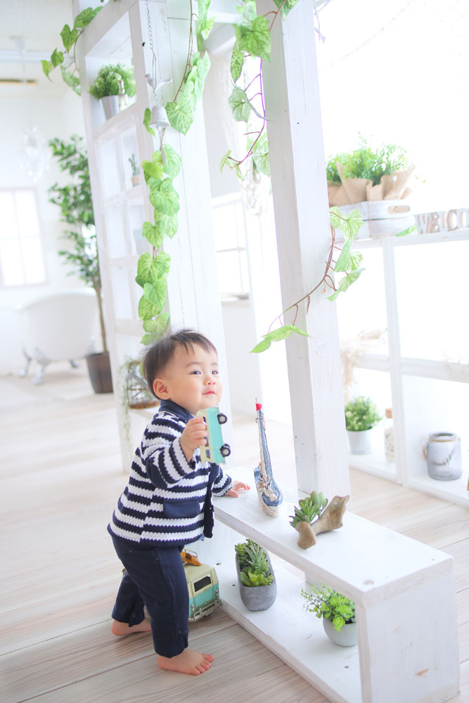 続いてのご紹介は、1歳誕生日記念のとうまくんです☆ お持ち込みの素敵な衣装とお店の衣装での撮影でした!!