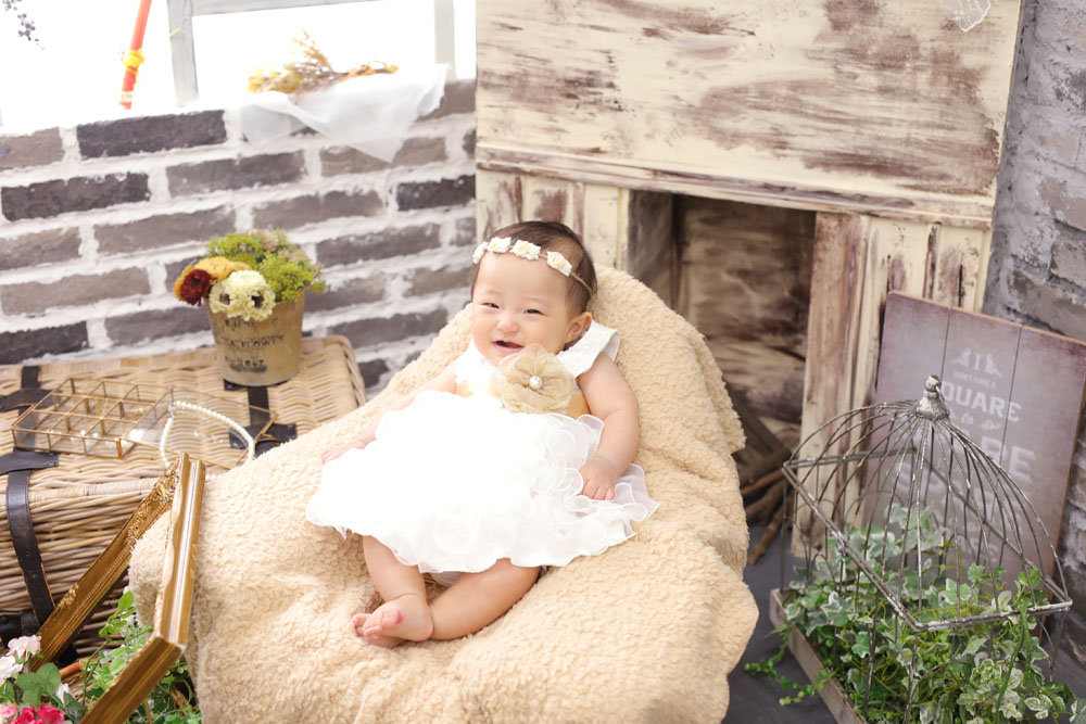 本日最初のご紹介はハーフバースデー記念でお越しのういかちゃんです✿ ご家族皆さんでデニムコーデできてくれました!