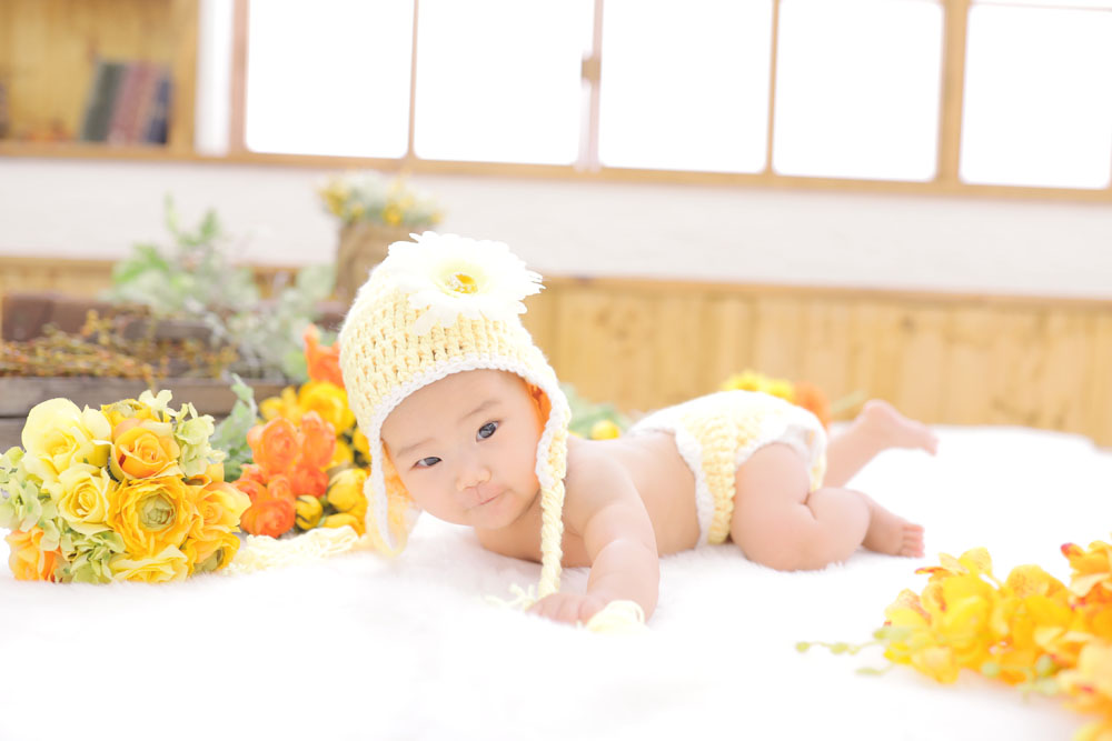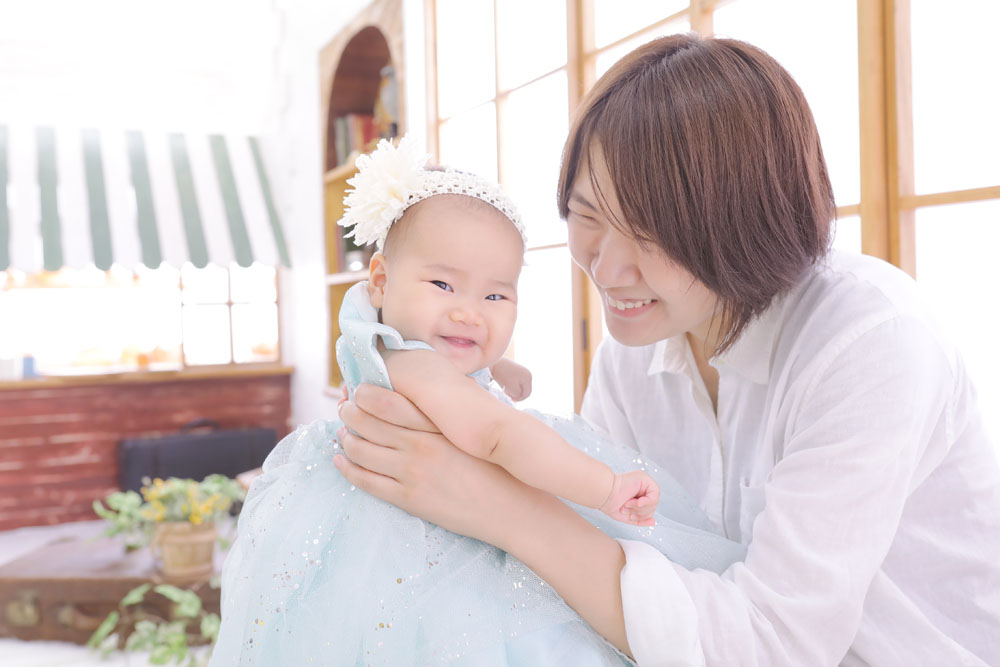 今日は抱っこをしてほしい気分だったようで 1人の撮影の時は泣いちゃいましたが、 ママ、パパに抱っこしてもらっての撮影では 笑顔を見せてくれました!!