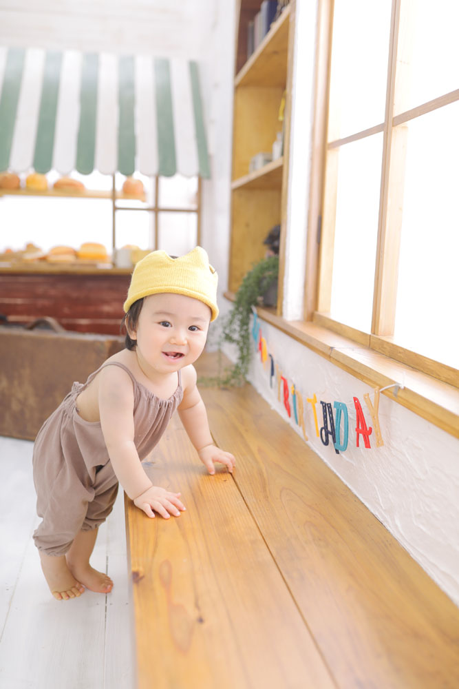 本日、最後のご紹介は1歳誕生記念のゆうせいくんです☆ お持ち込みの衣装とお店のもので撮影でした!