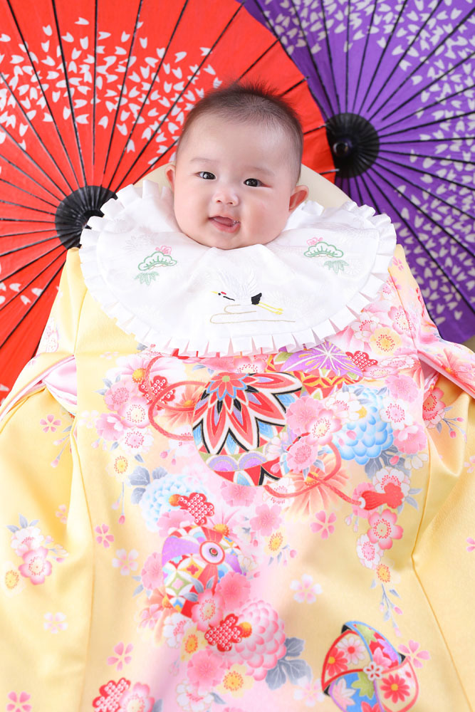 本日最初のご紹介はお宮参り記念でお越しのみみちゃんです✿ お持ち込みのお洋服と店のお衣装での撮影でした!