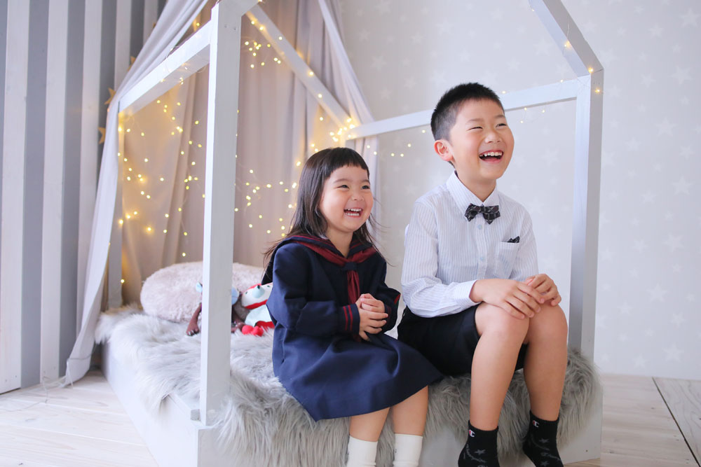 一着目はお持ち込みの制服での撮影でした^^ とってもニコニコのきほちゃん♪ りとくんと一緒に撮るときの笑顔もバッチリで とっても楽しそうな姿をたくさん見せてくれました!