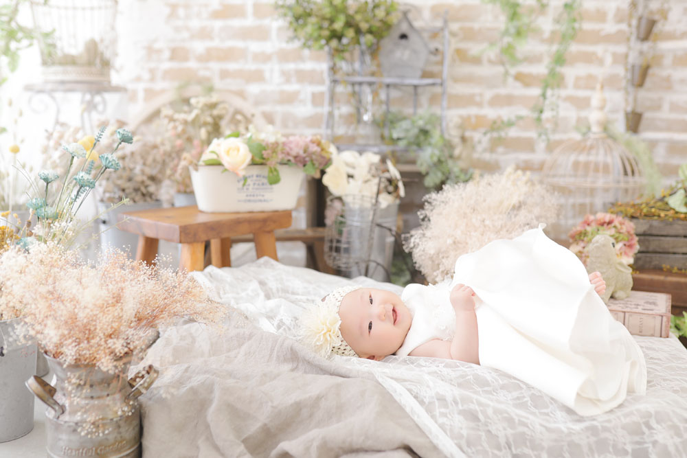撮影が始まる前からご機嫌だったりんねちゃん^^ 目が合うとニッコリを見せてくれてモデルさんバッチリ! 最後は頑張ってうつ伏せを見せてくれました!