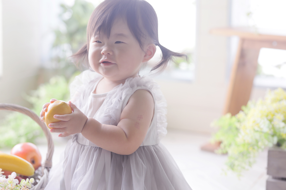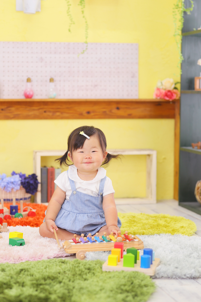 続いてのご紹介は1歳誕生記念でお越しのこはるちゃんです✿ お持ち込みとお店の衣装での撮影でした!