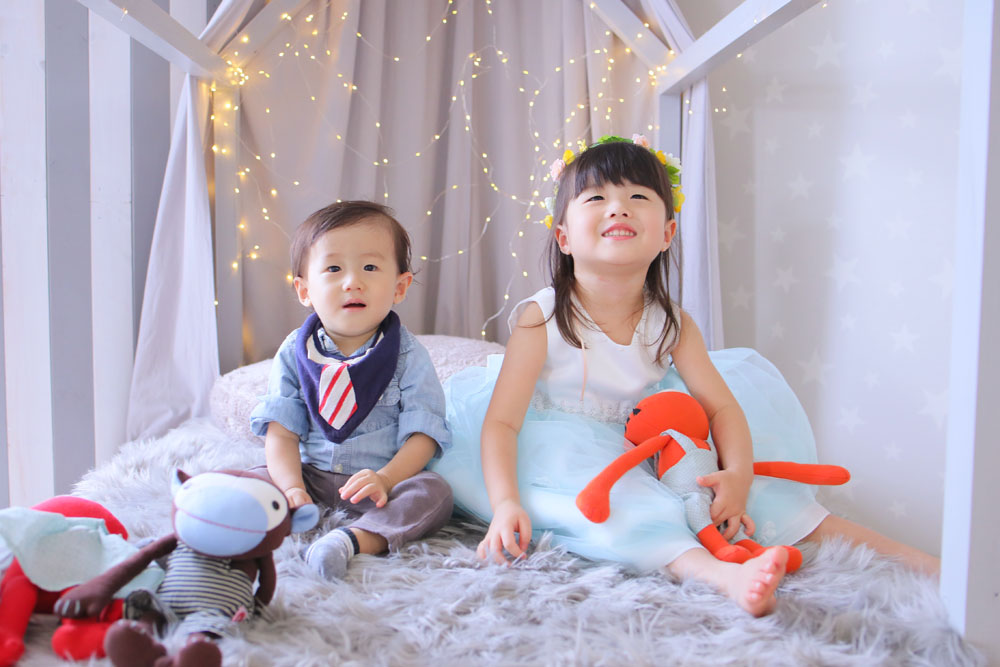 ママさんが選んだお着物とあんなちゃんが自分で選んだドレスを着ての撮影でした🌸 撮影が始まってとっても元気いっぱいな2人^^ あんなちゃんはいろんなものに興味を示していろんな表情をしてくれました^^
