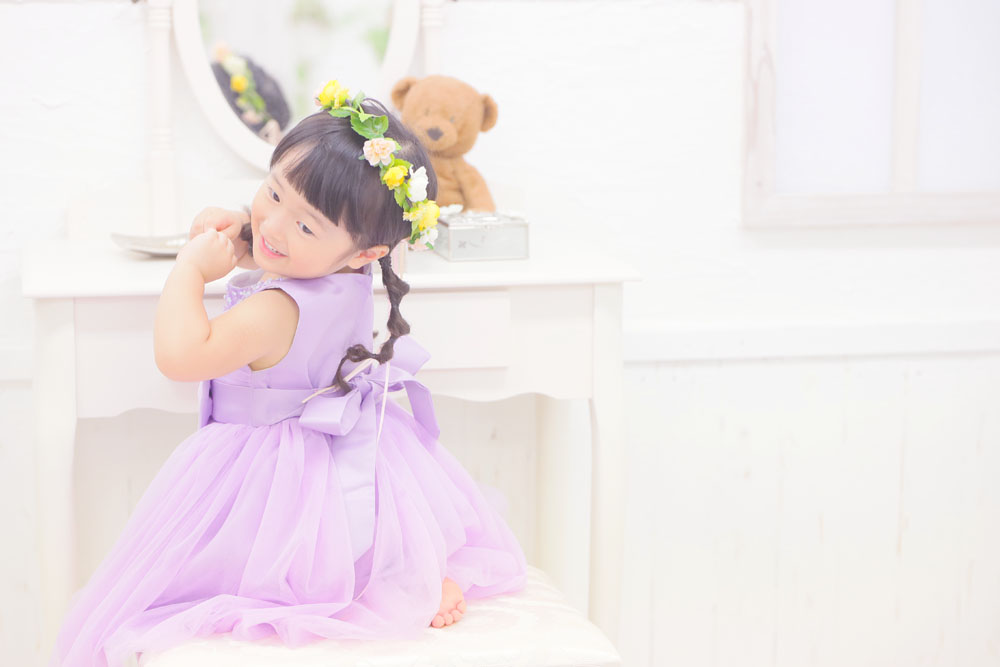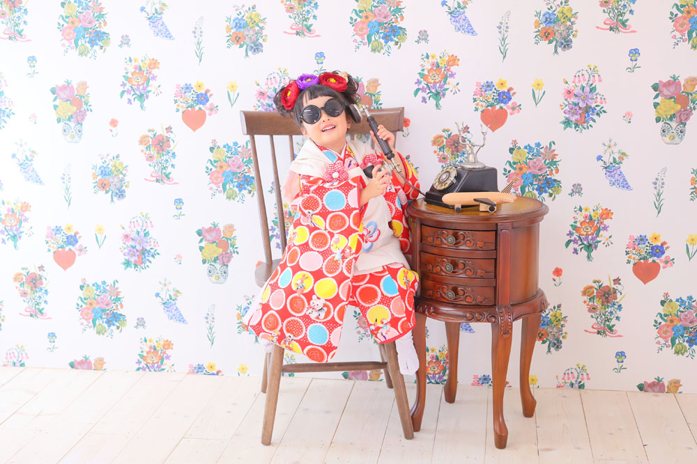 本日最後のご案内は、七五三でご来店のえなちゃんです♪ ご持参の髪飾りやサングラスもあわせての撮影でした。