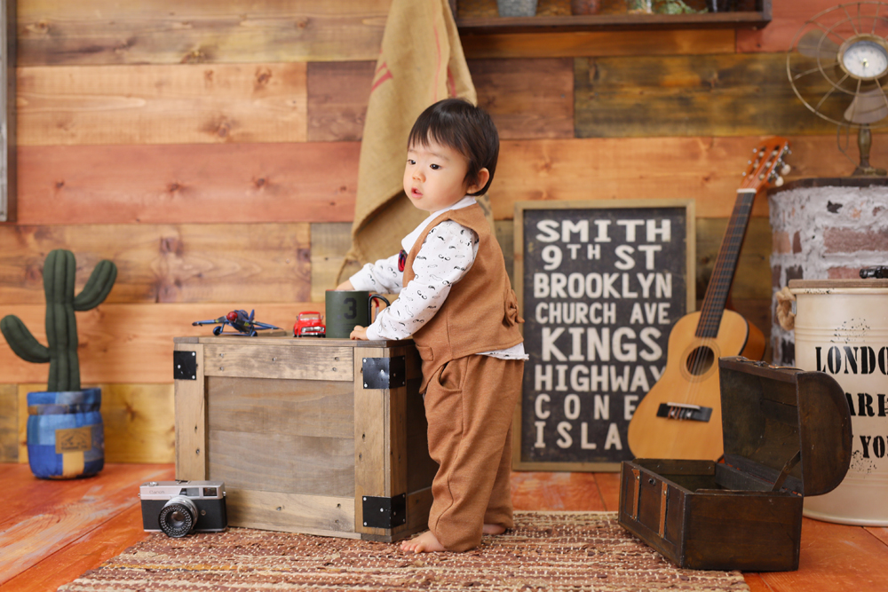 本日のご紹介は1歳誕生記念でお越しの男の子です☆ お持込みとお店のお衣装での撮影でした!