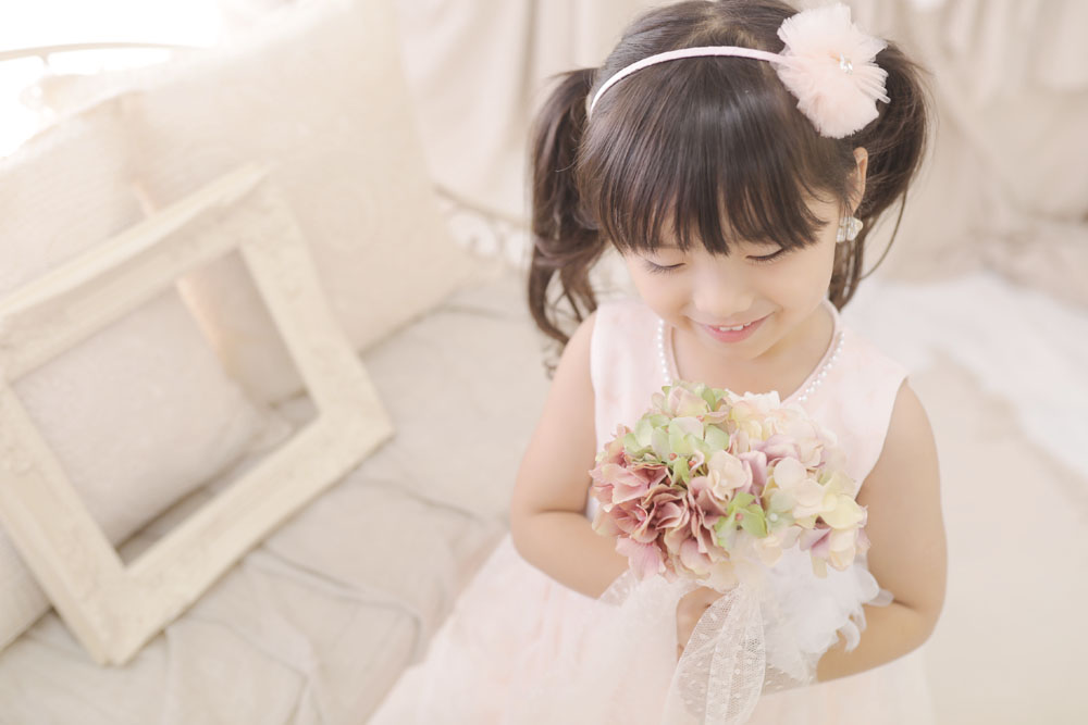 さほちゃんは、自分で選んだピンクのドレスで