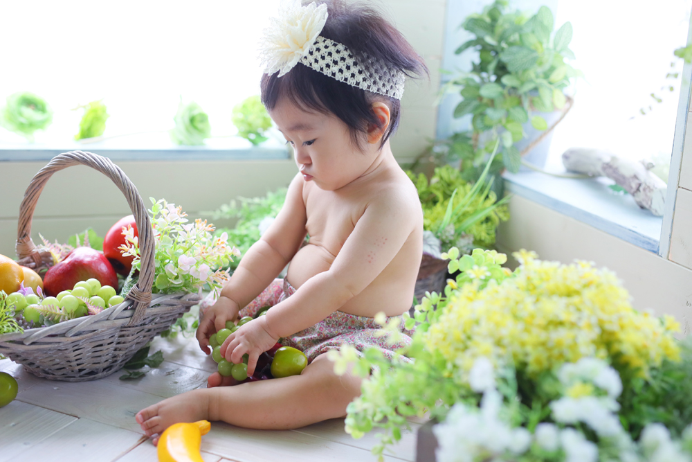本日最初のご紹介は1歳誕生記念でお越しの女の子です✿ お持ち込みとお店のお衣装での撮影でした!