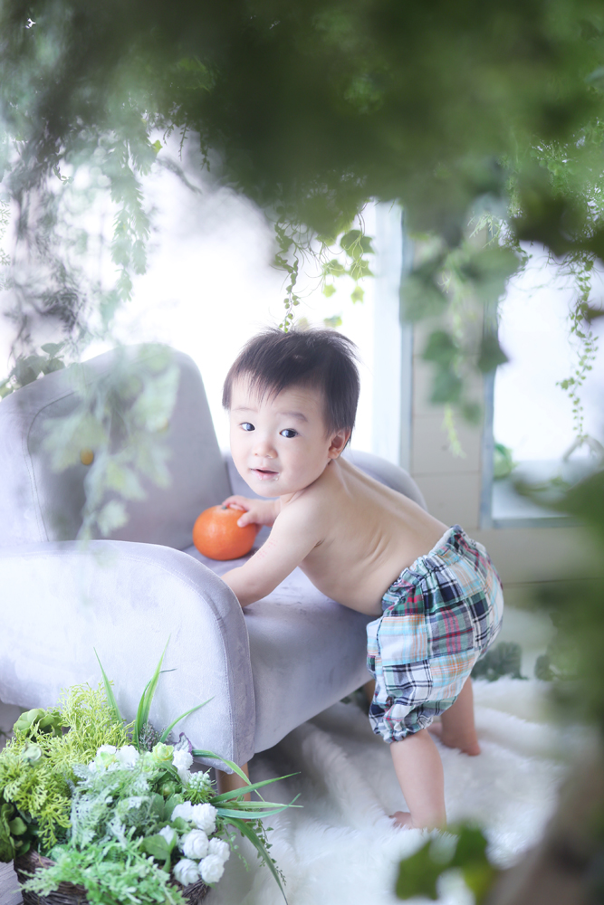 本日最初のご紹介は1歳誕生記念でお越しのはるまくんです☆ お持ち込みとお店御お衣装での撮影でした!