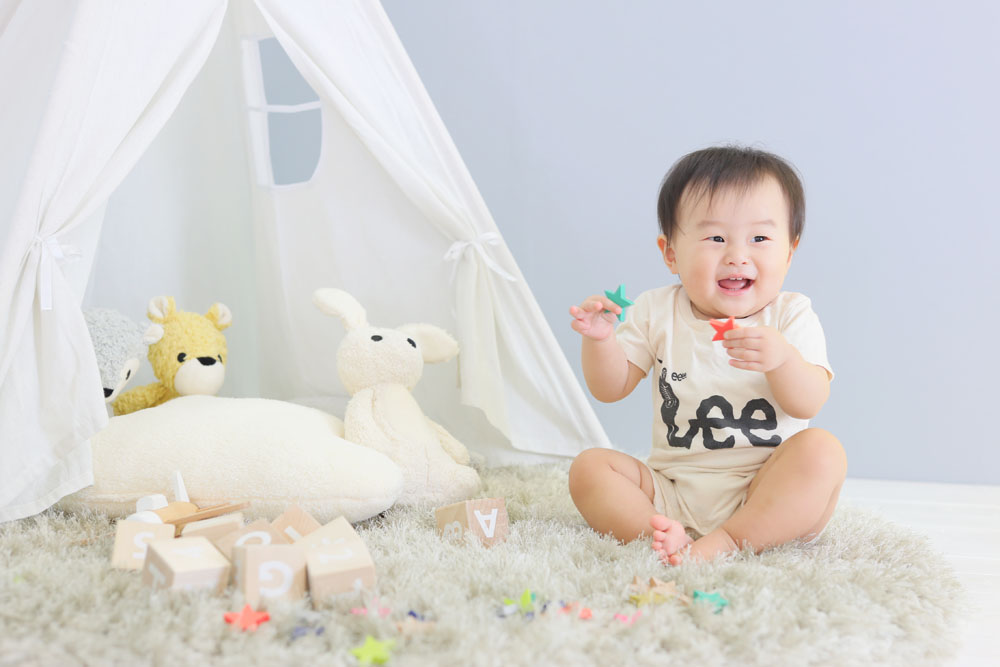 お店のブロックでカチカチ鳴らして遊んだり きらきらお星さまを目で追いかけたりしながら 可愛く撮影出来ました!