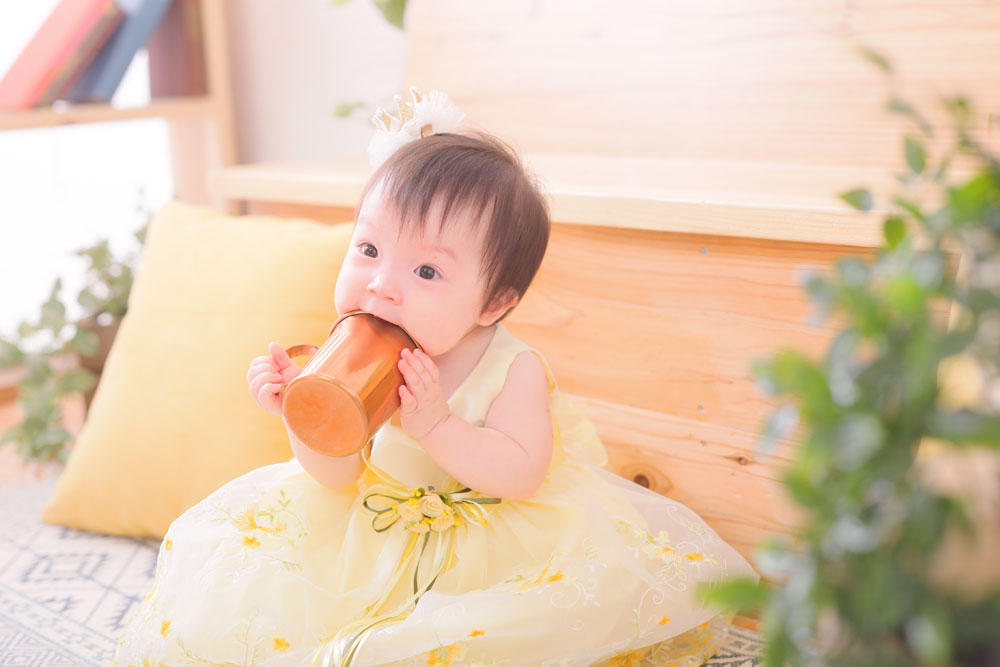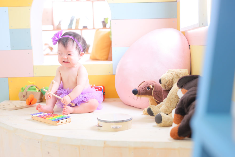 お持ち込みの可愛らしいドレスとお持ち込みのお店の衣装とでの撮影でした^^ とってもご機嫌さんのさなちゃん^^ おしゃべりも上手で撮影中もたくさんお話をしてくれました♪ ニコニコ笑顔も真剣におもちゃで遊ぶ姿も可愛らしいさなちゃんでした!