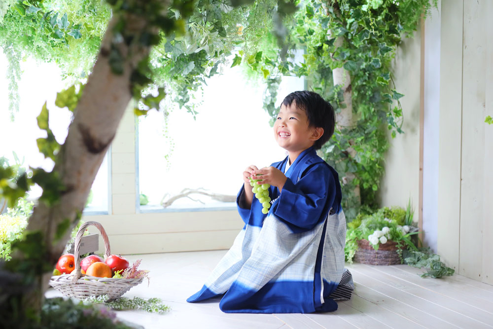 本日最初のご紹介は5歳七五三記念でお越しの男の子です☆ カッコいいお持ち込みのお着物とお店のお衣装での撮影でした!