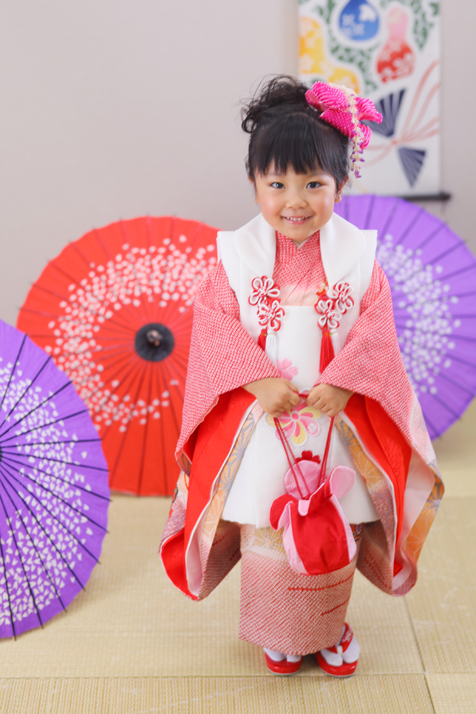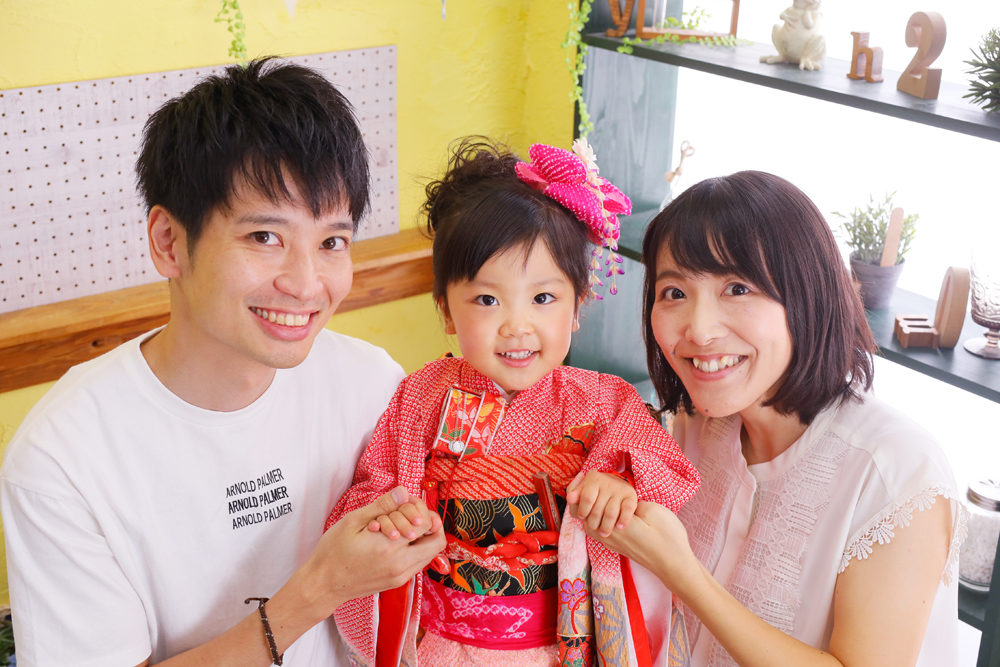本日最初のご紹介は3歳七五三記念でお越しの女の子です✿ お持ち込みの素敵なお着物での撮影でした!