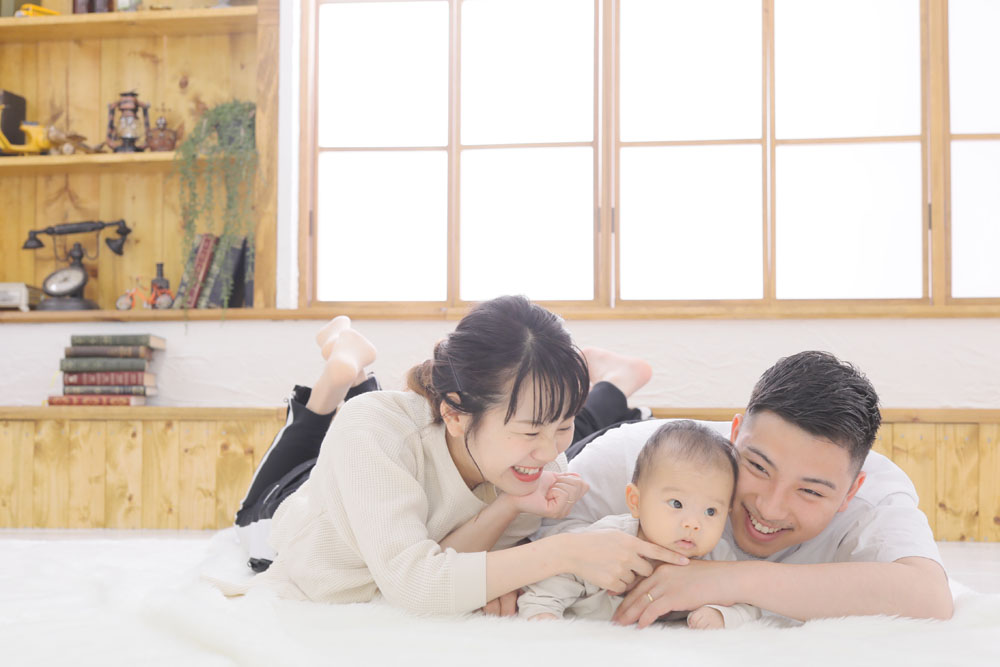 うつ伏せが大好きなけいとくん^^ ママとパパとお揃いの衣装での撮影では とっても嬉しそうでした!