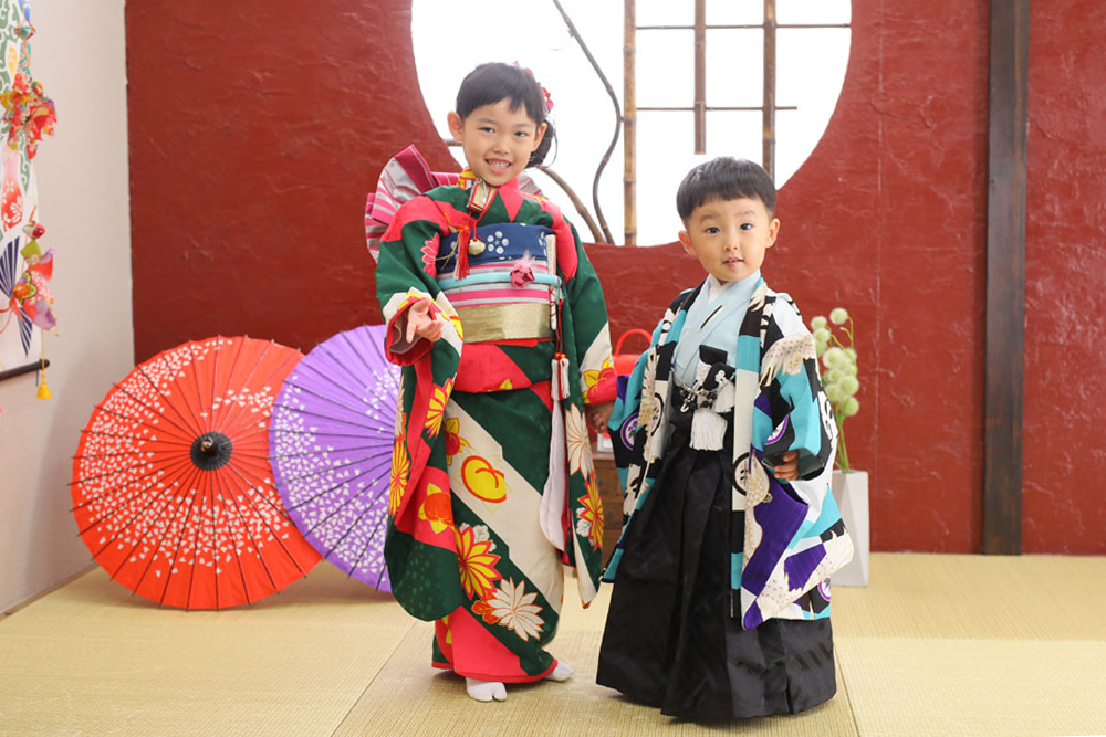 こんにちは!大濠店のぴーです♪ 本日最初のご紹介は、7歳七五三記念のいちかちゃんと3歳七五三記念のそうたくんです☆