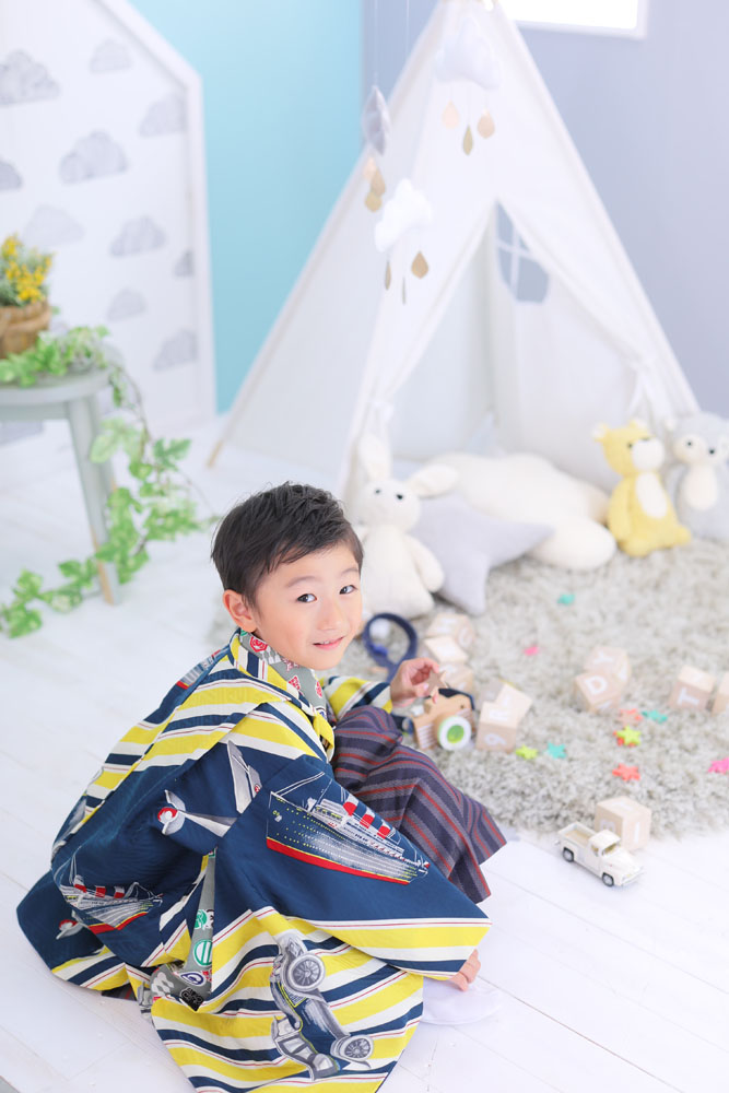 最初は恥ずかしそうにしていたせいやくん^^ 自分で決めた着物を着てモデルさんバッチリしてくれました! 撮影中はとっても楽しそうなせいやくんでした☆