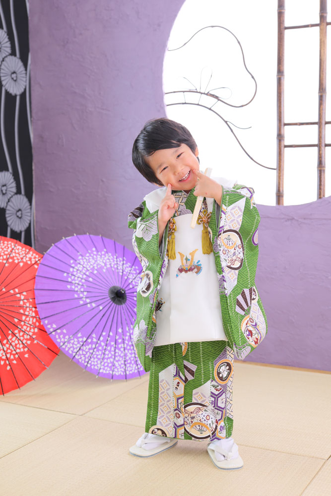弟くんは、パパさんママさんと一緒に選んだお着物で スタジオのおもちゃに大興奮しながら楽しく撮影出来ました!!