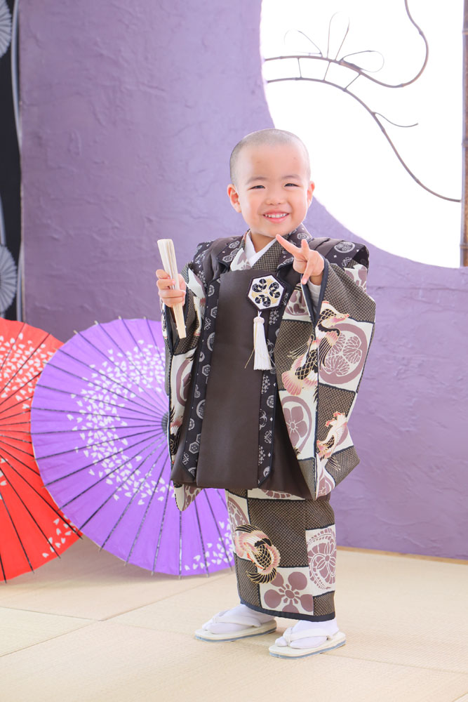 ちょっと最初は初めてのお着物に緊張して 着替えるのに抵抗があったかつとくんですが 撮影が始まるとぱっとモデルさんになって とっても上手に撮影出来ました!