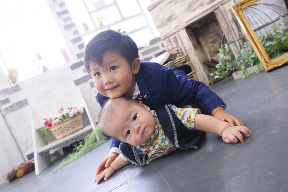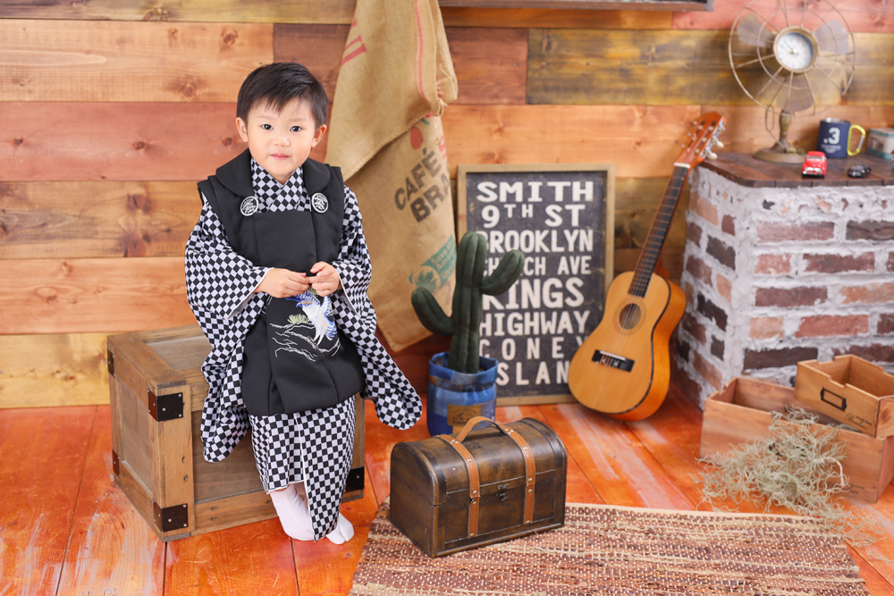 続いてのご紹介は3歳七五三記念でお越しのゆうとくんです☆ お店のお着物とお持ち込みのスーツでの撮影でした!