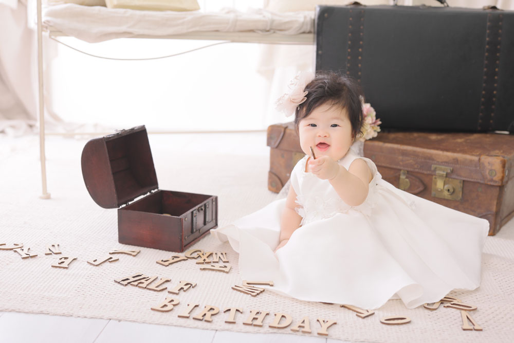 こんにちは!箱崎A店のぴーです! 本日最初のご紹介は、ハーフバースデー記念でご来店のもものちゃんと5歳七五三記念でご来店のたくみくんです☆