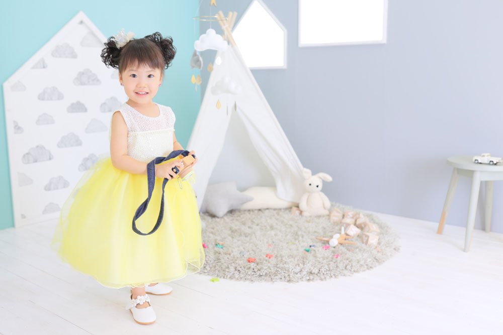本日、最後のご紹介は3歳七五三記念の女の子です☆ お持ち込みのお着物とお店の衣装での撮影でした!