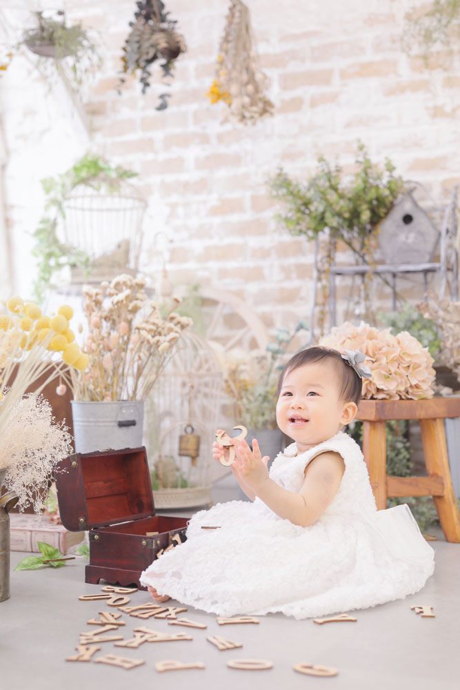 本日、最初のご紹介は1歳誕生記念のゆづきちゃんです☆ 私服での撮影とお店の衣装での撮影でした!