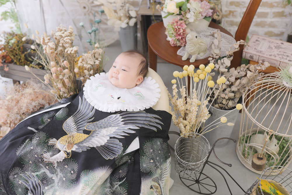 本日、最初のご紹介は3歳七五三記念の女の子と お宮参り記念の男の子です☆ お持ち込みの着物での撮影でした!