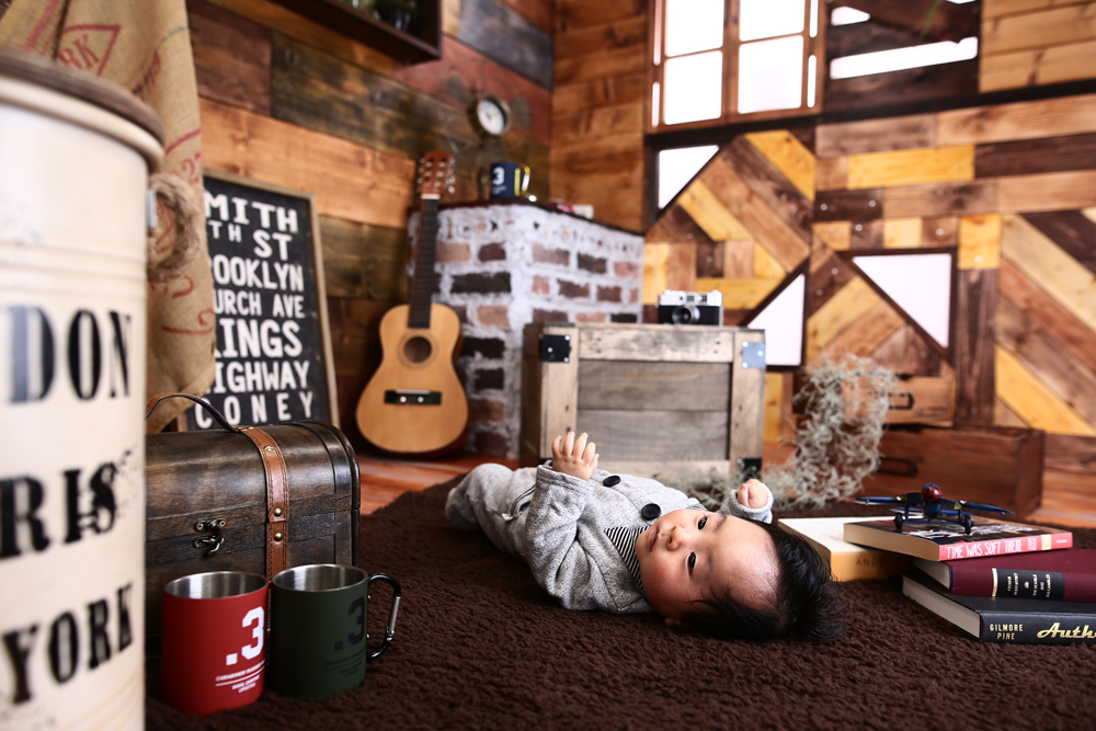 お店に着く直前は泣いていたみたいですが 撮影が始まるとモデルさんバッチリでした^^ ママさんパパさんが大人しいとびっくりしてましたね☆ 撮影が終わると夢の中へ、、、頑張りました!!