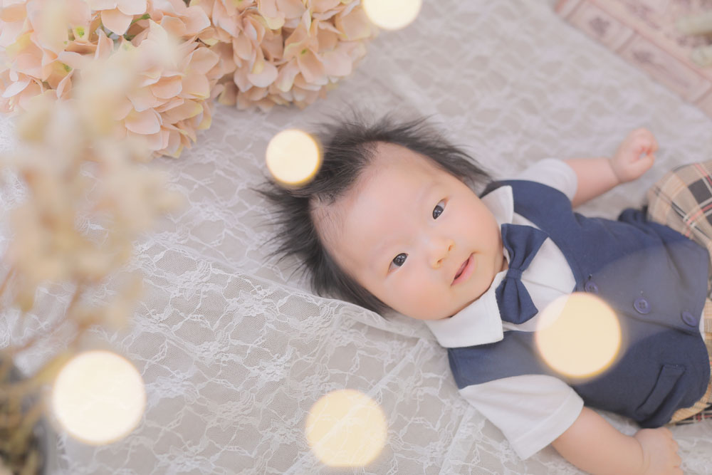 気持ち良さそうに寝たままお店に来てくれたモデルさん^^ 撮影が始まる直前に起きてくれてニコニコバッチリでした!
