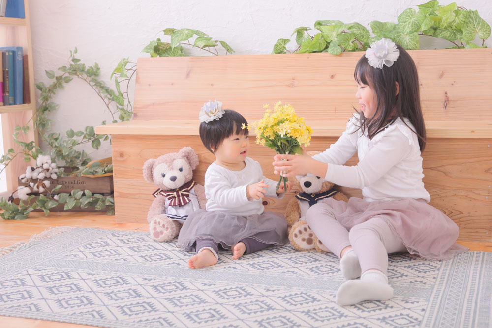 お持ち込みのお揃いのお洋服とお店の衣装とでの撮影でした♪