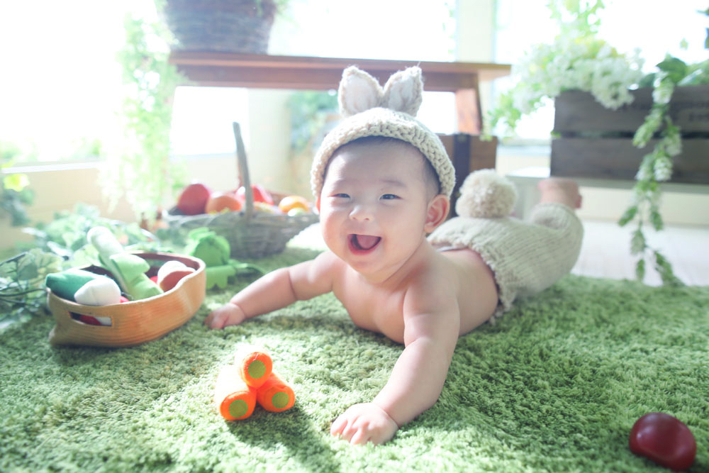 お店に着いた時は少し眠たそうだったみきちゃん^^ お着替えがお着替えが始まるとご機嫌さんでニコニコ☆ うつ伏せもとっても上手で最後までモデルさん頑張ってくれました!!