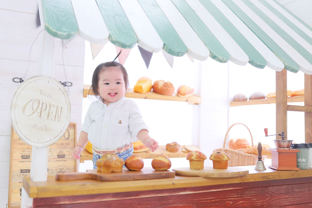 続いてのご紹介は1歳誕生記念のゆらちゃんです☆ お持ち込みの衣装とお店の衣装での撮影でした!