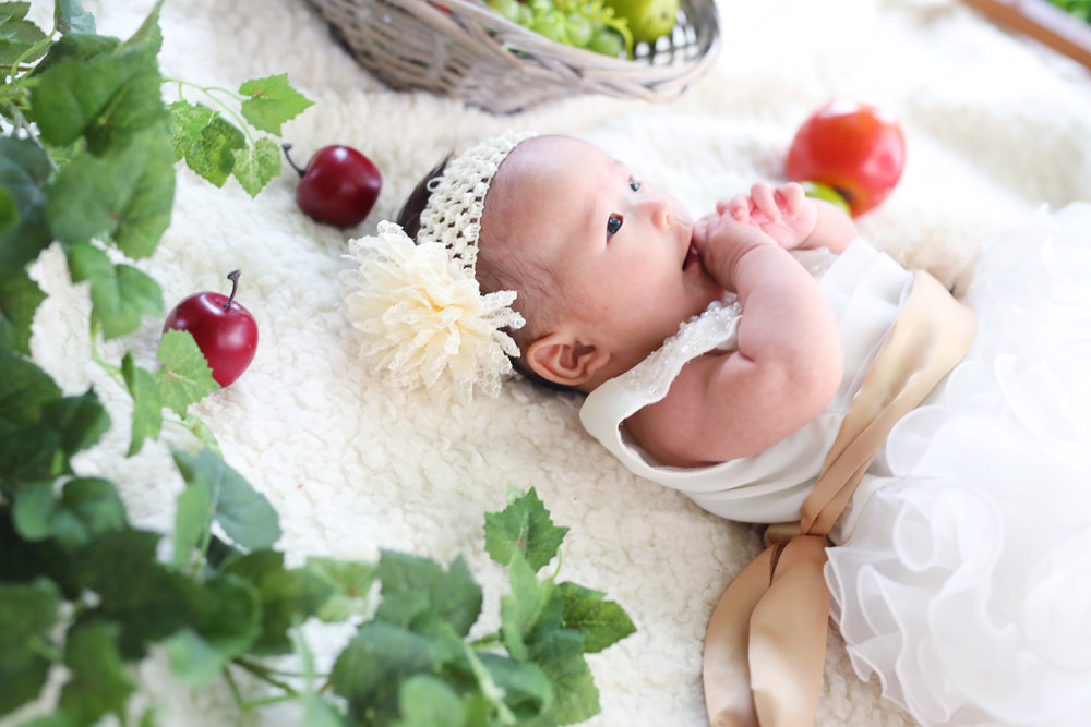 本日最初のご紹介はお宮参り記念でお越しのりこちゃんです🌸 お持込みのお着物とお店のお衣装での撮影でした!