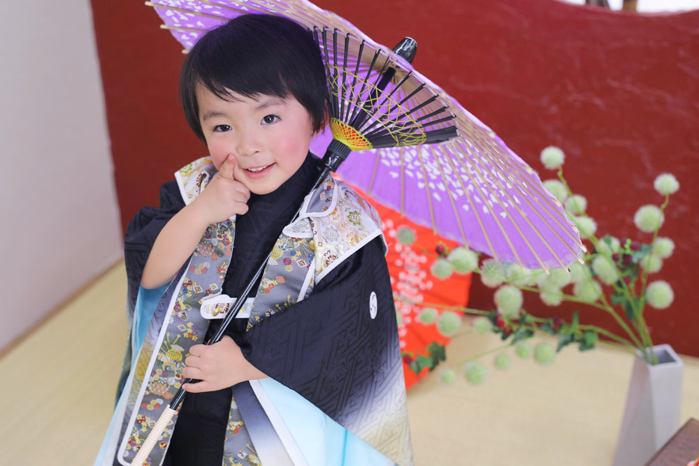 本日最後のご紹介は3歳七五三記念でお越しのはるとくんです☆ お持込みの素敵なお着物での撮影でした!!