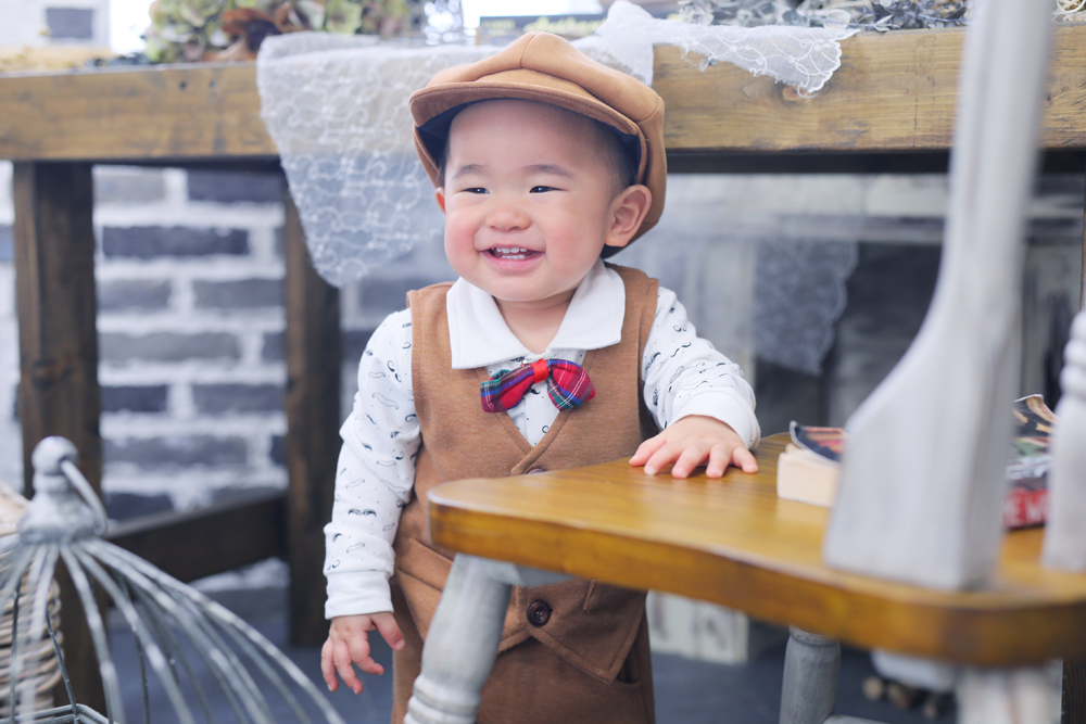 本日最初のご紹介は1歳誕生記念でお越しのけいくんです☆ お持込みとお店のお衣装での撮影でした!