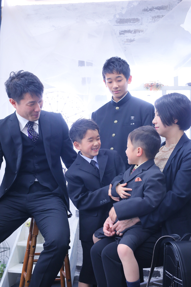 本日最初のご紹介は入学記念でお越しのつばさくんとすばるくんです☆ 弟のひびきくんも一緒に素敵なスーツと制服で来てくれました!