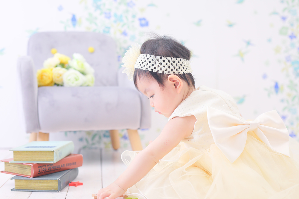 本日最初のご紹介は1歳誕生記念でお越しのゆいなちゃんです🌸 お持込みとお店のお衣装での撮影でした!