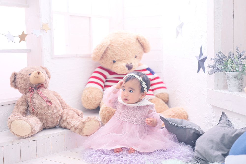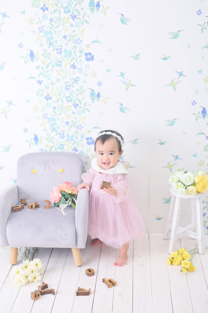 本日最初のご紹介は1歳誕生記念でお越しのめいちゃんです🌸 お持込みとお店のお衣装での撮影でした!