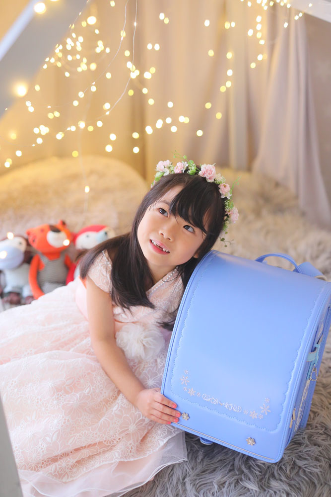 明るい水色のランドセルがはなちゃんの雰囲気にぴったりでした😊