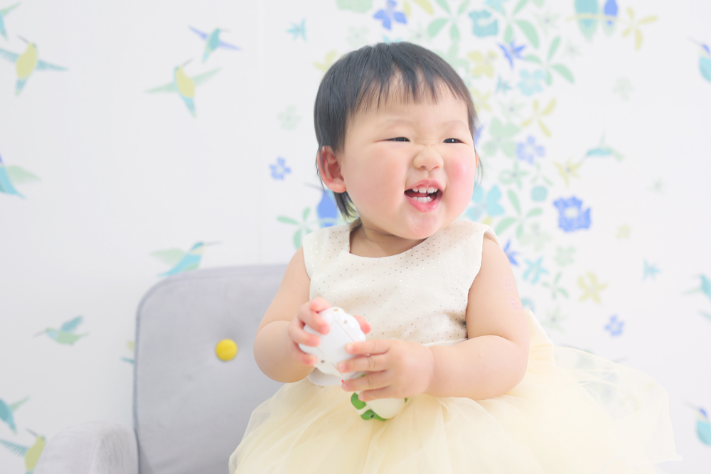 最初は少しドキドキしていたあおいちゃん^^ 撮影が始まるとお話したり遊んだりと頑張ってくれました! 終わった後は眠たそうにしつつも元気にバイバイしてくれました☆