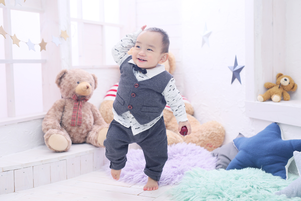 本日最後のご紹介は1歳誕生記念でお越しのこうきくんです☆ お持込みとお店のお衣装での撮影でした!