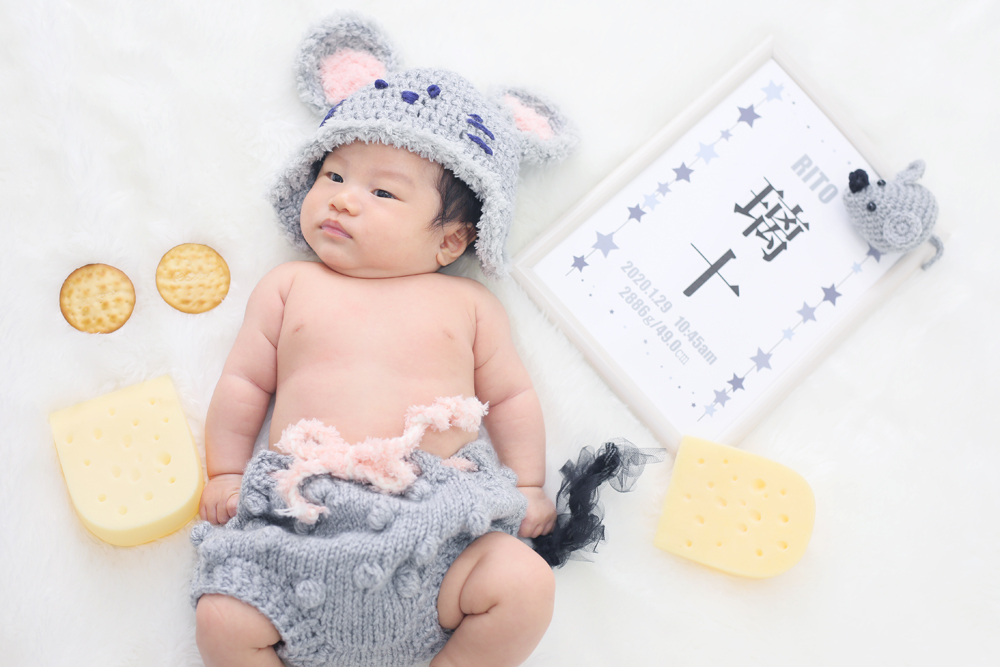 本日のご紹介はお宮参り記念でお越しの、りとくんです! お持込みの衣装・小物とお店衣装での撮影でした! 始めは眠たそうだったりとくん💤 ぬいぐるみの衣装を着るとご機嫌にお話してくれたりと モデルさんバッチリでした🌸